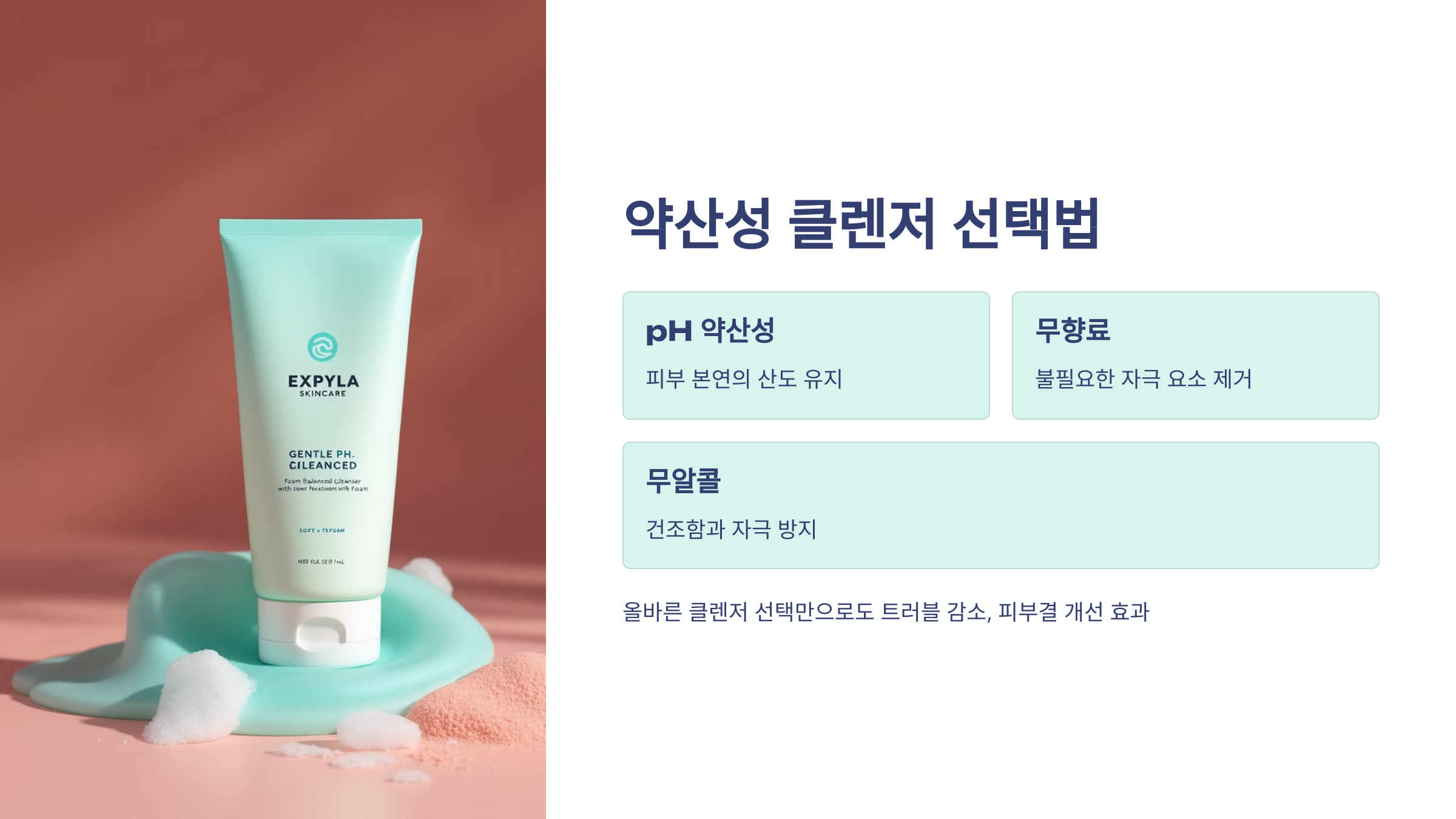강한 클렌징 제품은 피부장벽에 독입니다. pH 약산성, 무향료, 무알콜 클렌저를 추천드려요.