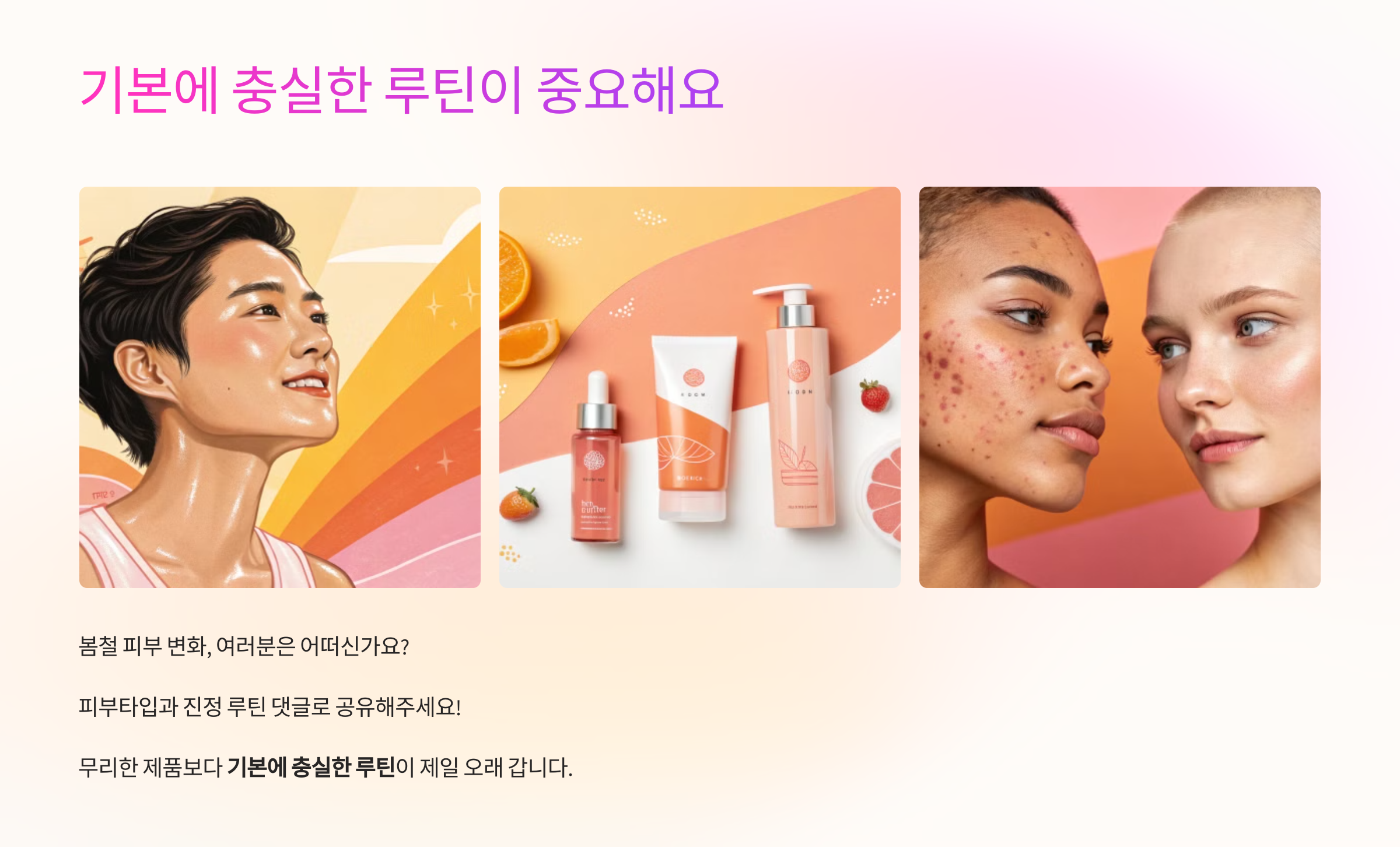 무리한 제품보다 기본에 충실한 루틴이 제일 오래 갑니다.