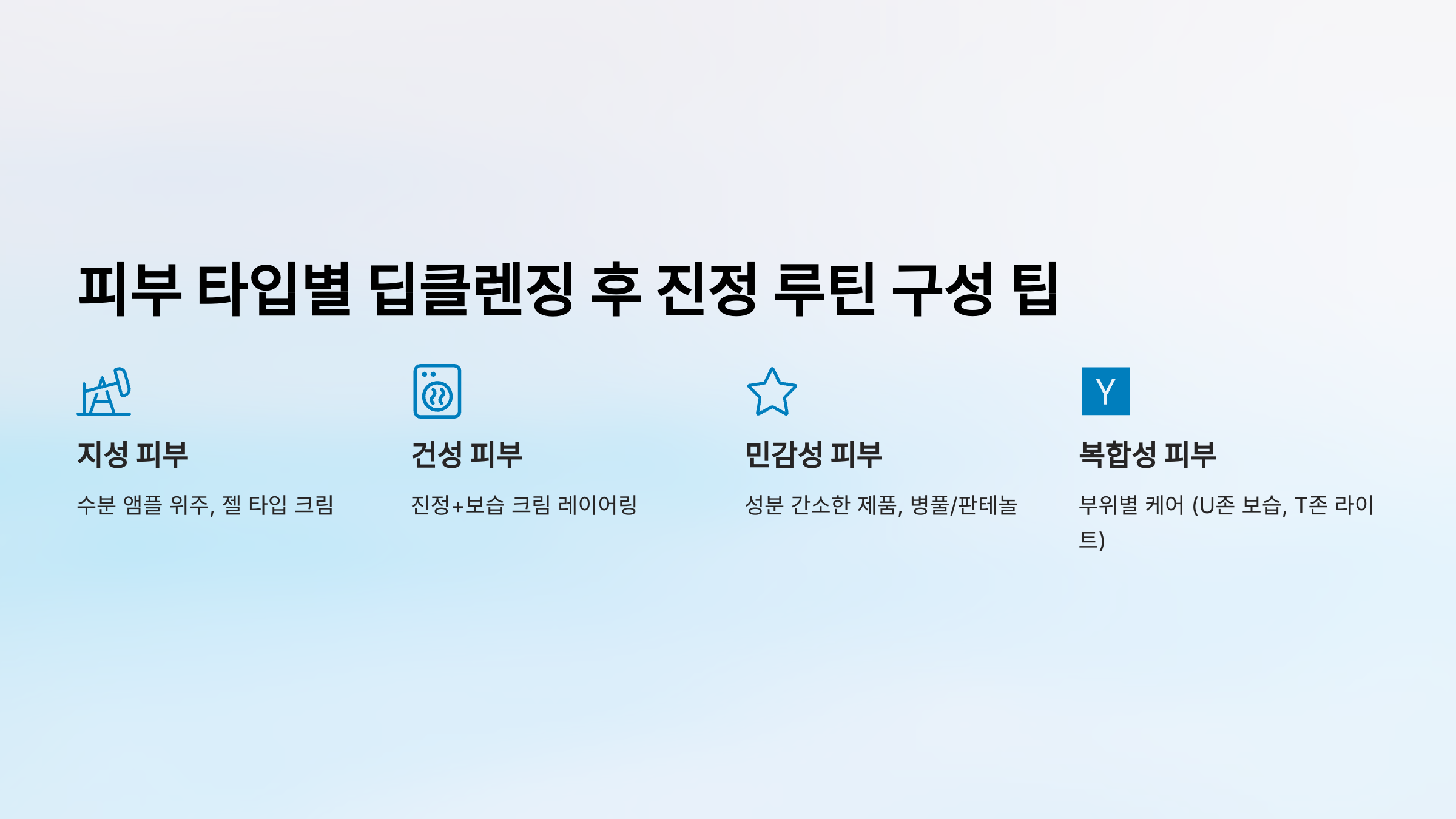 - 피부 타입별 딥클렌징 후 진정 루틴 구성 팁